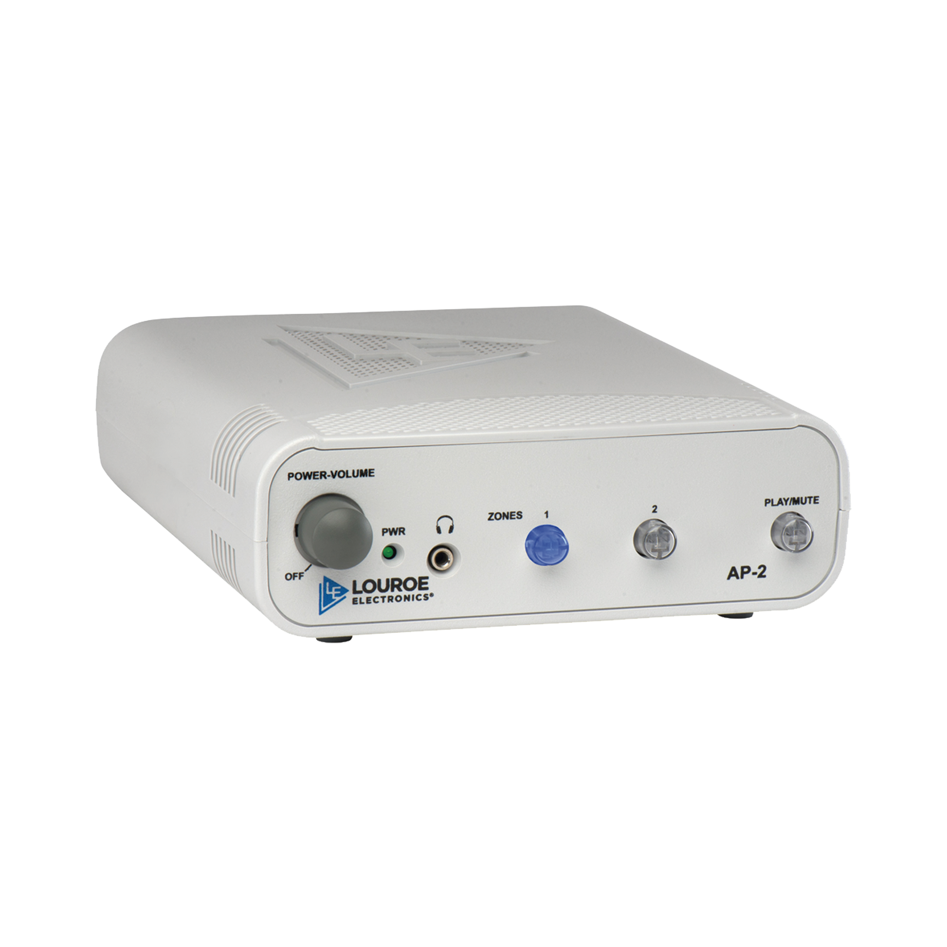 El AP-2 es una estación base de audio de dos zonas. Está diseñado para el monitoreo de audio y la interfaz con DVR, u otros dispositivos de audio que aceptan entrada de nivel de línea. La unidad es una estación base de audio de escritorio que contiene un altavoz de 3 " para monitorear el audio en vivo y la reproducción de un DVR o VCR. AP-2 acomodará 2 micrófonos y la selección de zona es por botón. Contiene silenciador / interruptor de reproducción que silencia el audio.