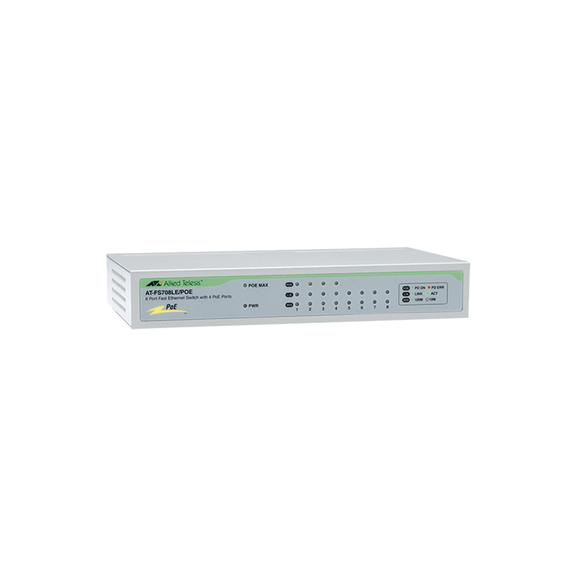 8 puertos 10/100 Mbps (4 puertos PoE).