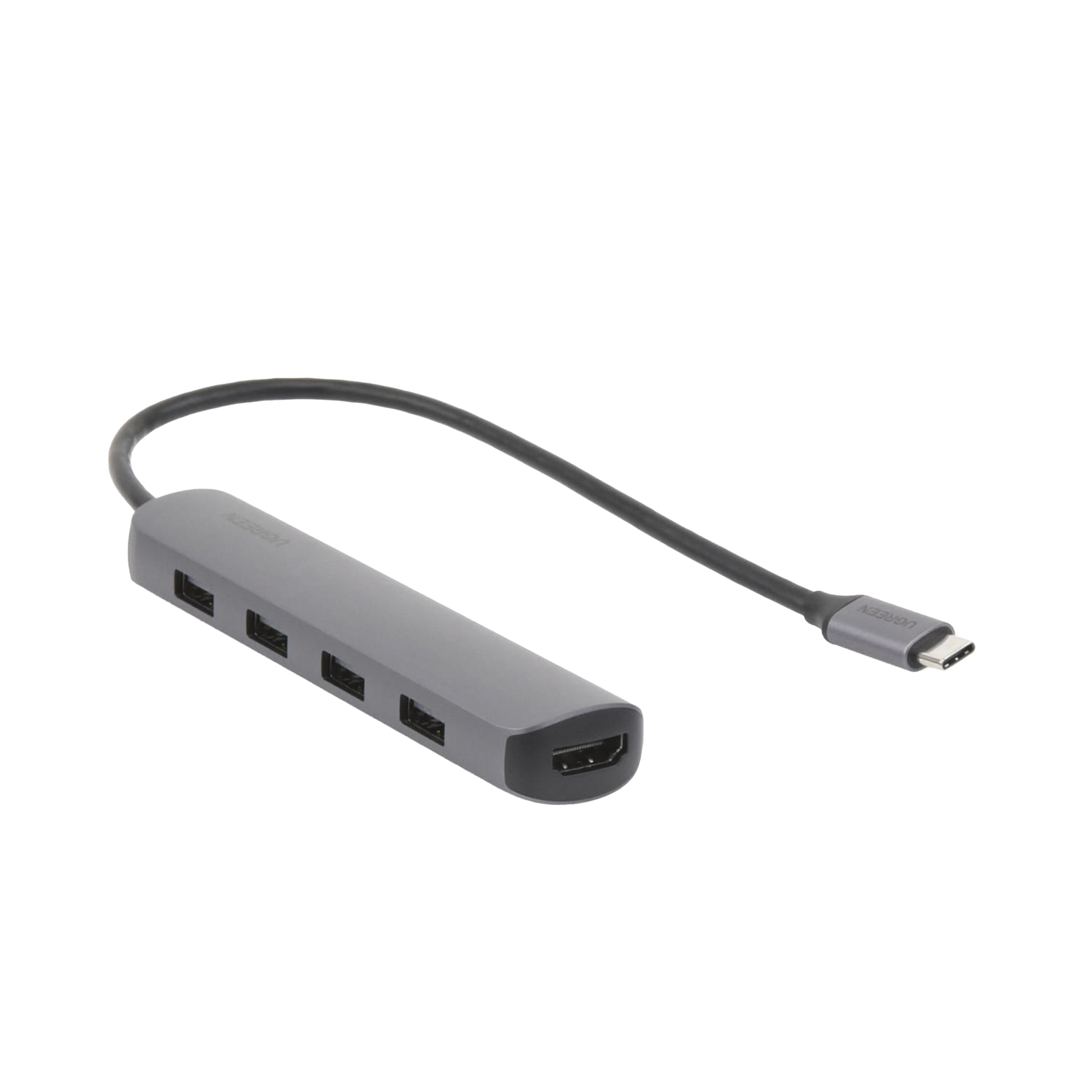HUB USB-C Multipuertos / 4 Puertos USB-A 3.0 / HDMI 4K@30Hz / USB 3.0 a 5Gbps / Chip Inteligente Incorporado / 5 en 1 / Carcasa de Aluminio.