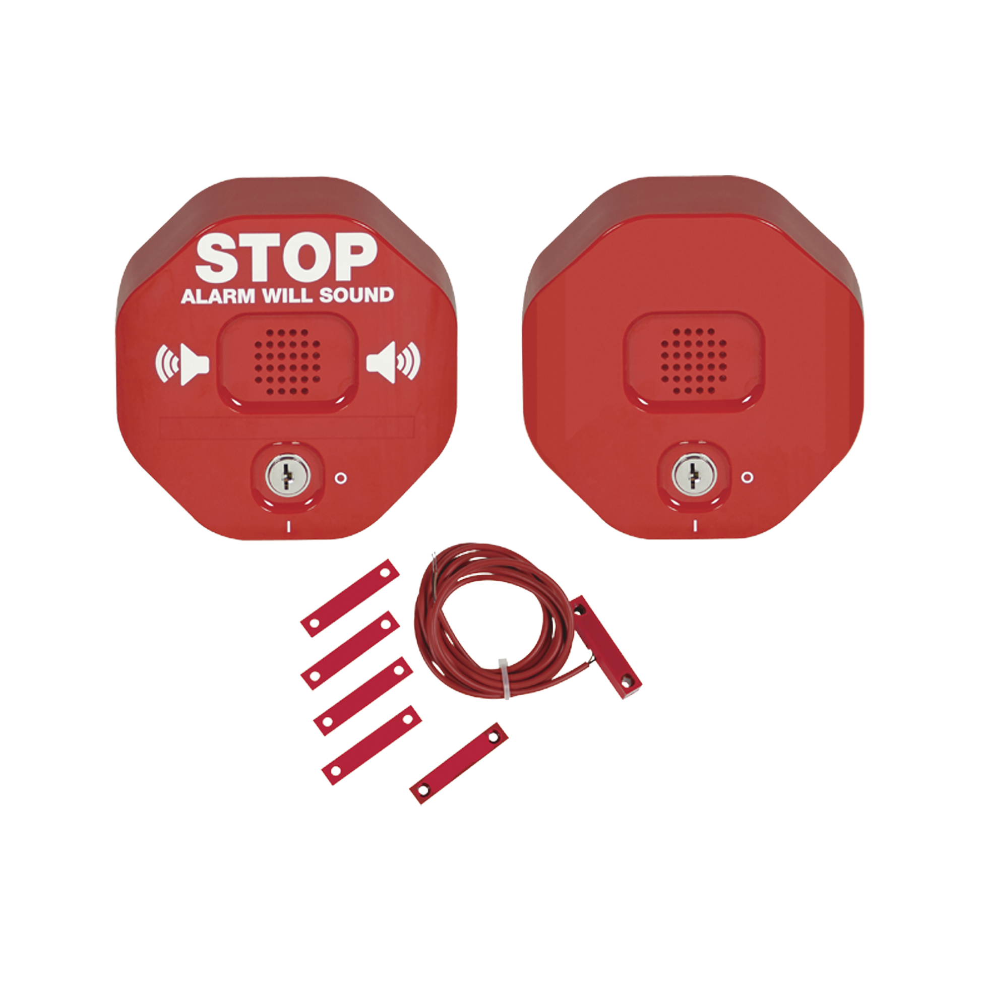 - Alarma de puerta multifunción Exit Stopper® para puerta doble con bocina remota