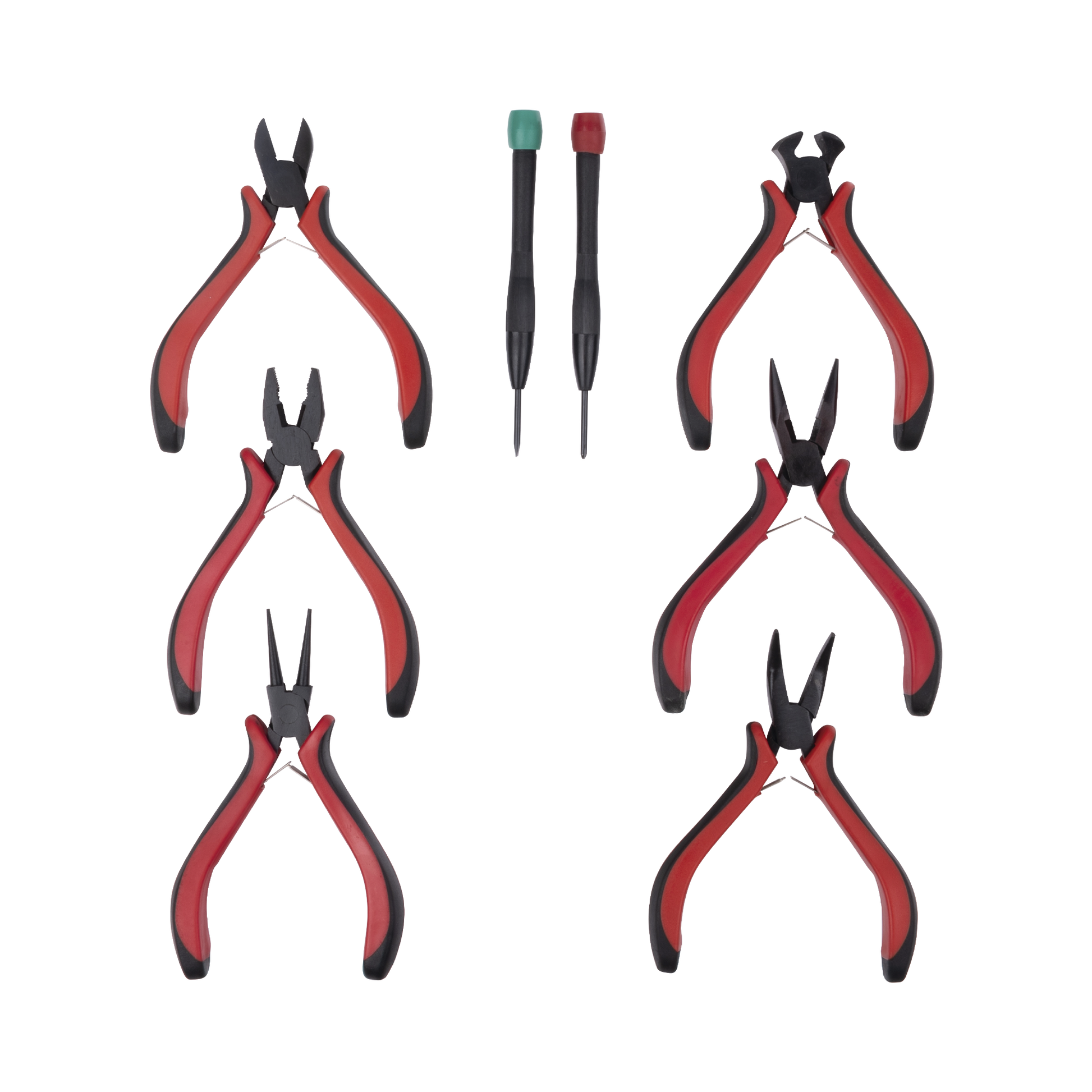 Juego de Herramientas con 6 Pinzas Eléctricas de 4.5" + 2 Desarmadores de Precisión (Plano y Cruz).
