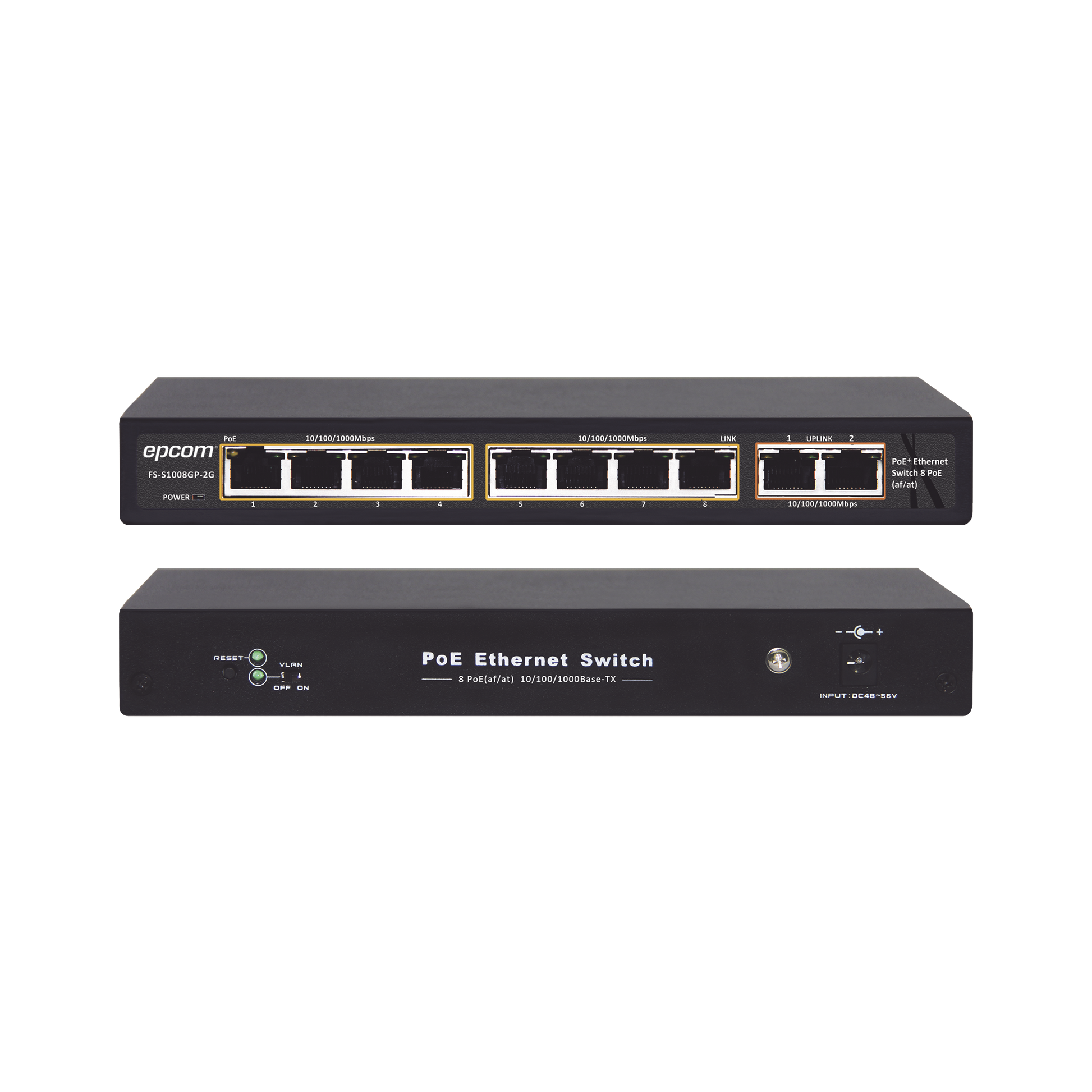 Los switches EPCOM POWER LINE han sido diseñados para video vigilancia y sistemas de cableado estructurado. De 4 y 8 puertos Ethernet de 1000Mbps y 2 puertos de enlace ascendente de 1000Mbps, soportan la función VLAN, puede prevenir eficazmente todo el sistema de tormentas de transmisión para que la transferencia de datos sea más segura.