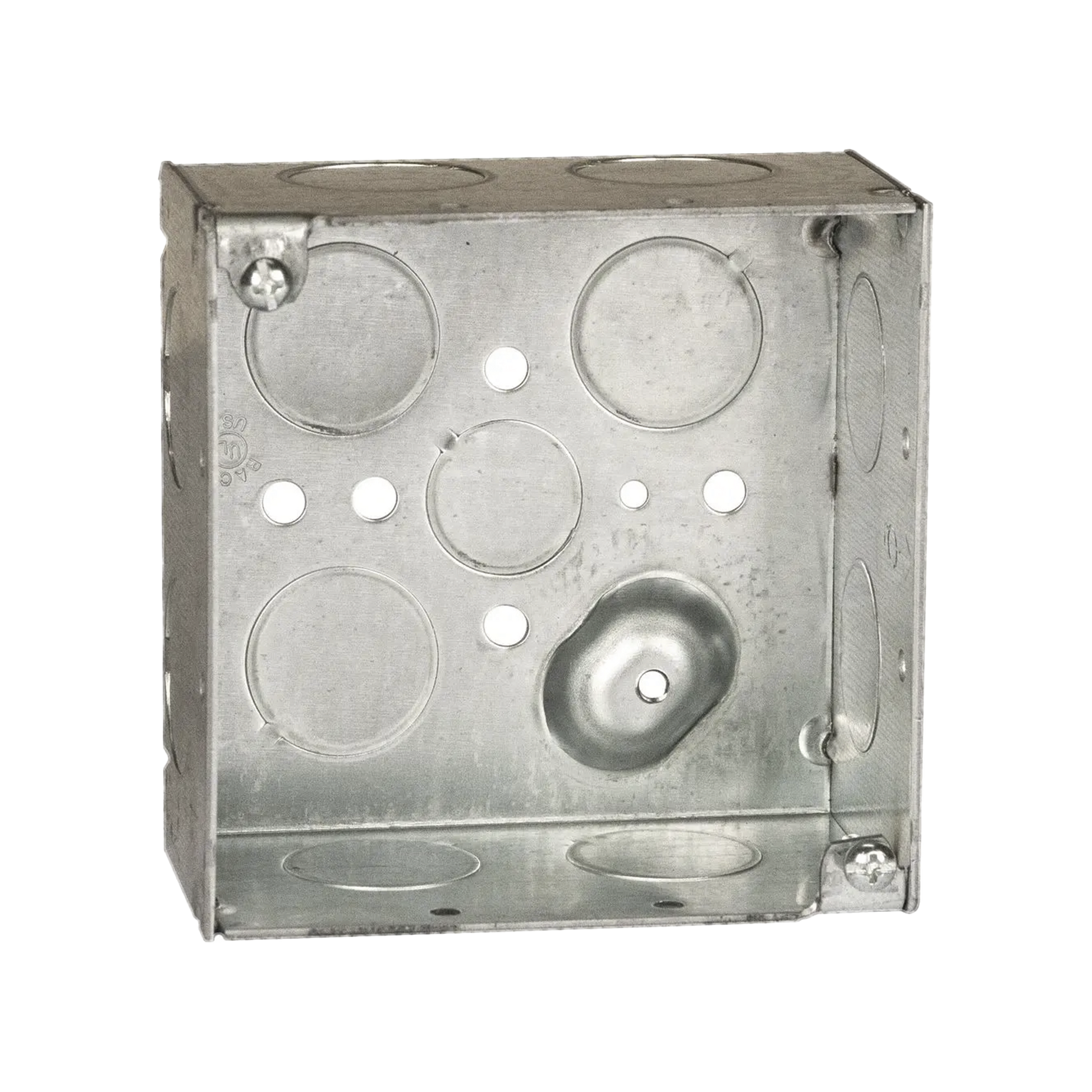 Caja Cuadrada Galvanizada de 4 x 4" / Profundidad 2 1/8 / 11 Entradas de 3/4" y 1 de 1/2".