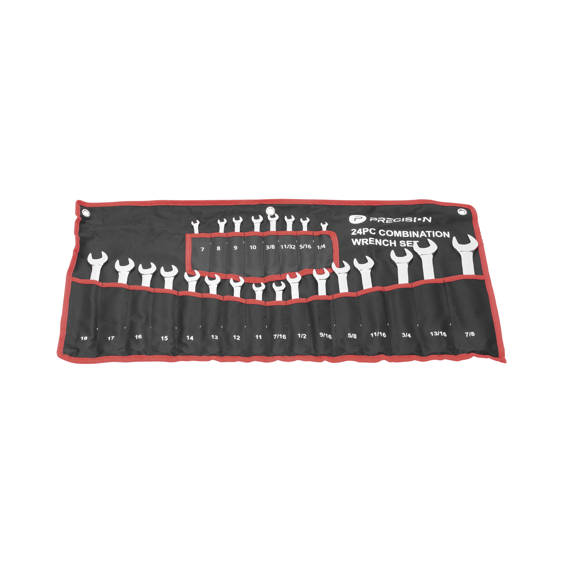 Juego de llaves combinadas métricas y SAE de 24 piezas con acabado chapado en cromo.