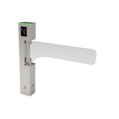La barrera de cortesía SBT1000S cuenta con un diseño compacto y fácil de integrar en espacios reducidos. Se adapta perfectamente para instalarla en accesos de cortesía junto a torniquetes o torniquetes tipo flap.